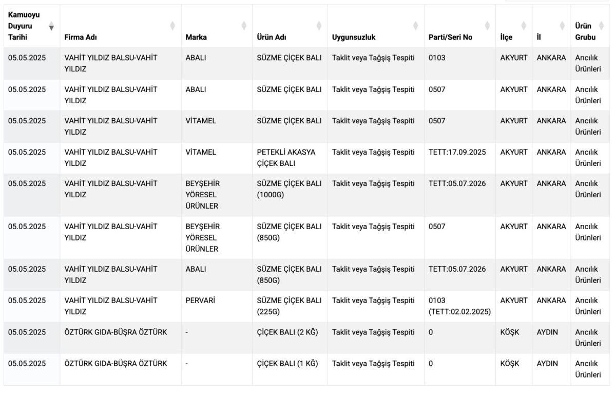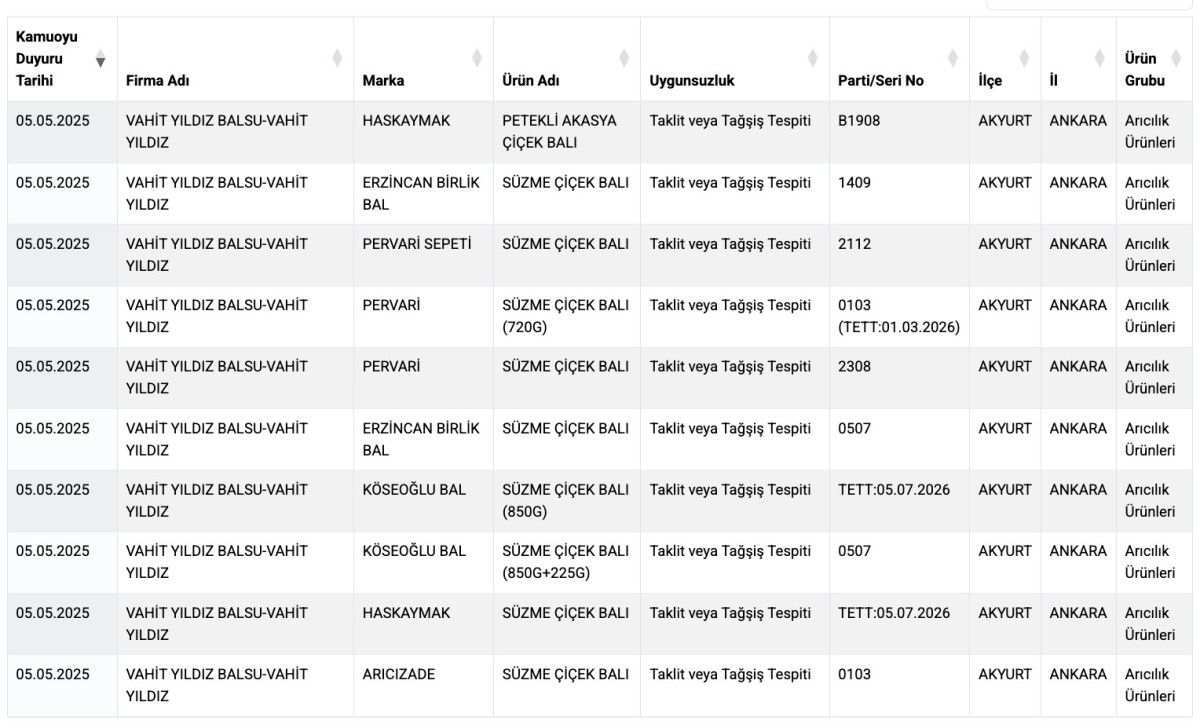 Tarım ve Orman Bakanlığı’nın yayınladığı Sıhhati Tehlikeye Düşürecek Besinler listesine bir eser daha eklendi.