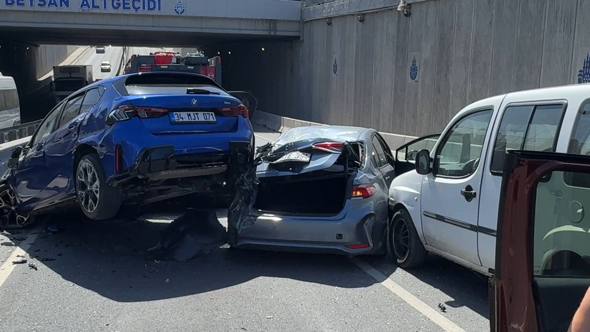 Uğur şerit değiştirdiği sırada aynı yönde ilerleyen ve arkadan gelen 5 araç, zincirlemeye kazaya karıştı.
