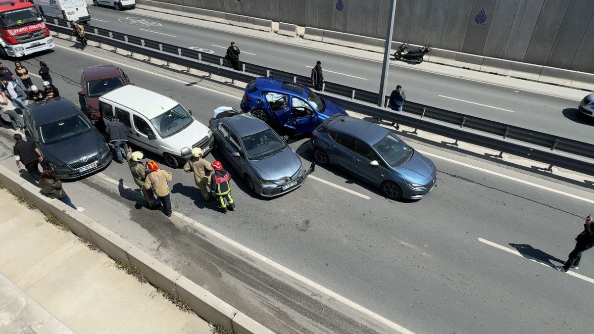 Uğur şerit değiştirdiği sırada aynı yönde ilerleyen ve arkadan gelen 5 araç, zincirlemeye kazaya karıştı.
