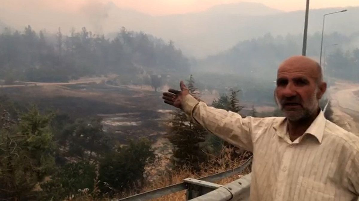 Öte yandan, bir köylünün zeytinliği yangında küle döndü. O anları anlatan köylü, “Yukarıda 10 dönüm zeytinliğim, yandı. İçinde bahçe konutum var. orada yaşıyorum. Diğer meskenim yok. Köyden buraya geldim. Aşağıda hayvanlarım vardı, son anda kurtardım. 25 tane keçi, koyunum vardı. Onlar kurtuldu, arkadaş sahiplenip götürdü.” dedi.