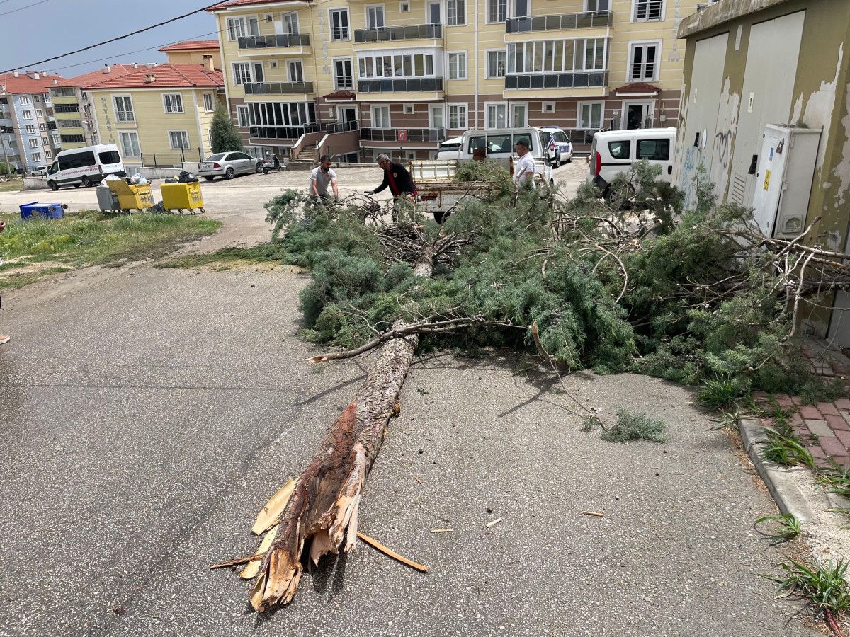 Bölgesinde kimi çatı modülleri yerinden koparken, birçok ağacın kalın kolları kırılarak yollara düştü.