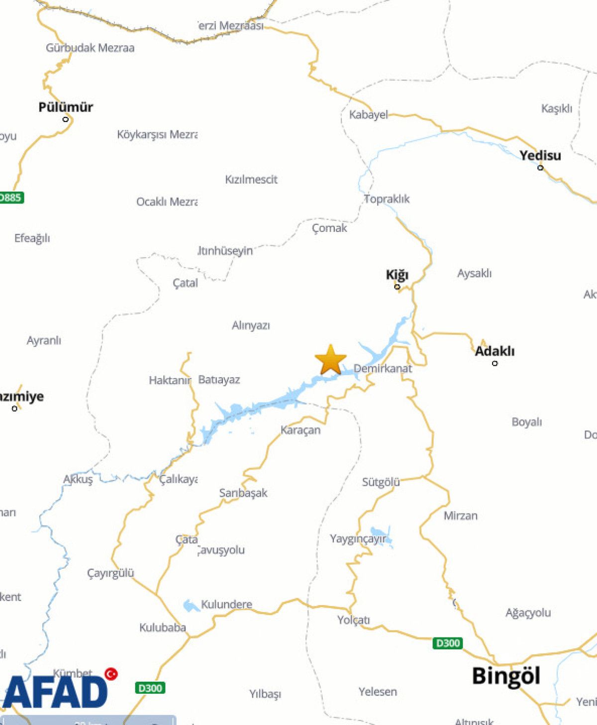 Merkez üssü Kiğı ilçesi olan sarsıntının şiddeti 4.3 olarak açıklandı..