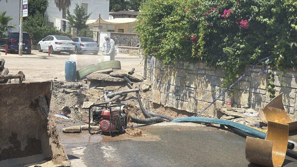 İhbarla bölgeye gelen Muğla Su ve Kanalizasyon Yönetimi takımları tarafından, tamir çalışması başlattı.