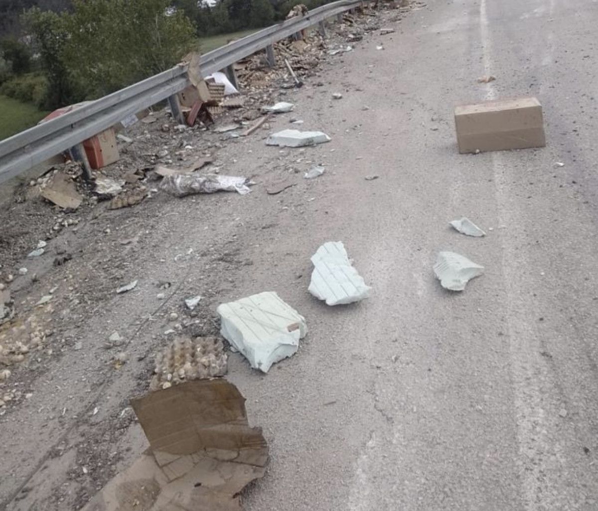 Bolu Göynük-Mudurnu karayolu Gölözü mevkiinde meydana gelen kazada,yumurta yüklü tır, şoförün direksiyon hakimiyetini kaybetmesi sonucu bariyerlere çarptı.