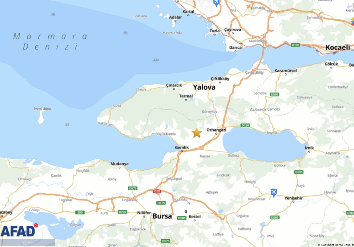 Depremin merkez üssü Bursa Gemlik olarak açıklandı.