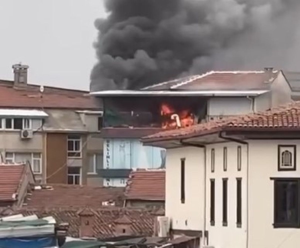 Bursa’nın merkez Osmangazi ilçesinde bulunan Okçular Çarşısı’ndaki 4 katlı bir iş merkezinin çatı katında, öğlen saatlerinde şimdi nedeni belirlenemeyen bir yangın çıktı. Kumaşların depolandığı alanda başlayan alevler, kısa müddette büyüyerek etrafa yayılmaya başladı.