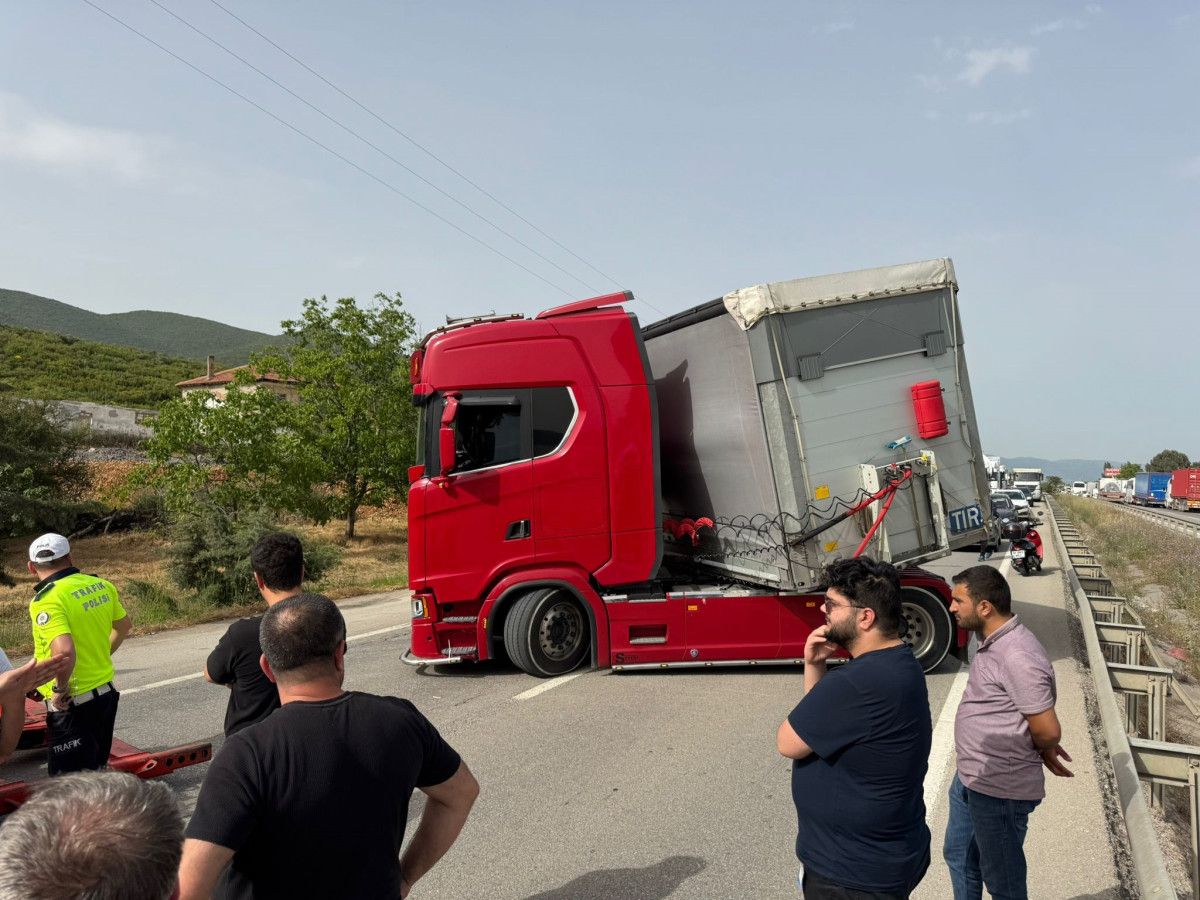 Yalova’dan Bursa tarafına seyir halinde bulunan 48 yaşındaki Bülent Ç. yönetimindeki 61 KN 278 plakalı tır yoldan çıkıp makas attı.