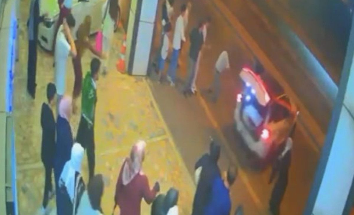 Arabanın hareket ettiği anda önünden kaçan kişi ise saniyeler ile aracın altında kalmaktan kurtuldu.