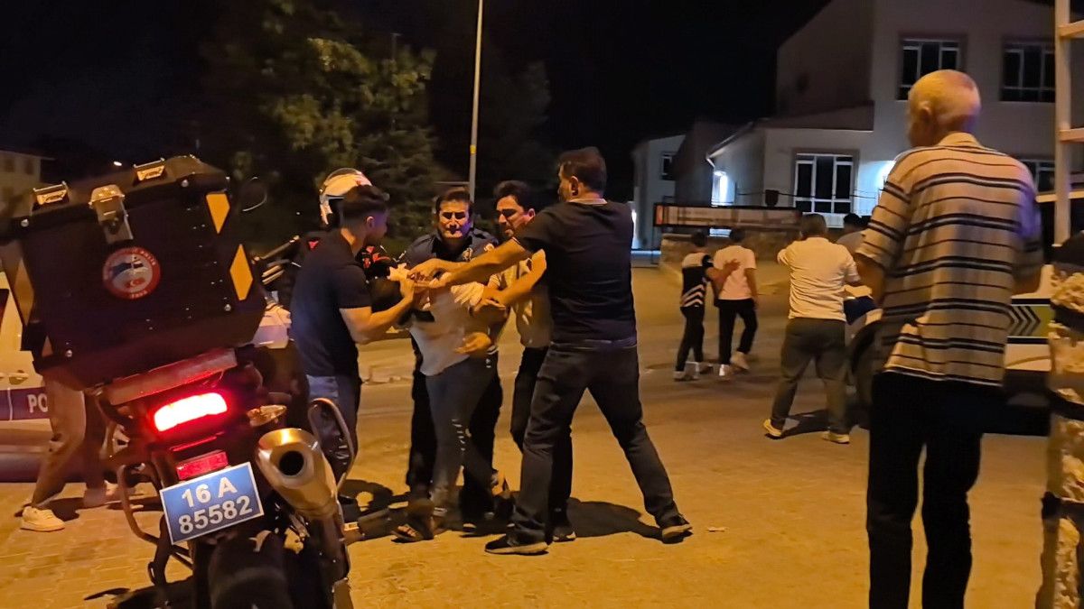 Ekipler ağır efor sonucu şahısları ayırdı. Polise direnç gösteren 2 şahıs gözaltına alındı. Gözaltına alınan şahıslar İnegöl Devlet Hastanesine sıhhat raporu alınmak üzere götürüldü.