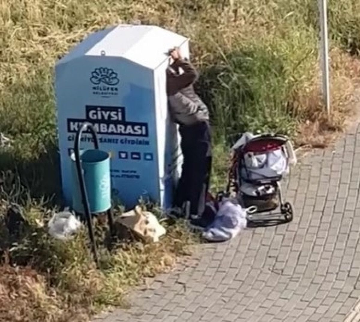 Bursa’nın Nilüfer ilçesi 23 Nisan Mahallesi’nde, gereksinim sahipleri için kurulan atık giysi dolapları hırsızların maksadı oldu. Kentin çeşitli noktalarına yerleştirilen bu dolaplara giren şüpheliler, adeta canlarını hiçe sayarak içerideki giysileri çalmaya çalıştı.