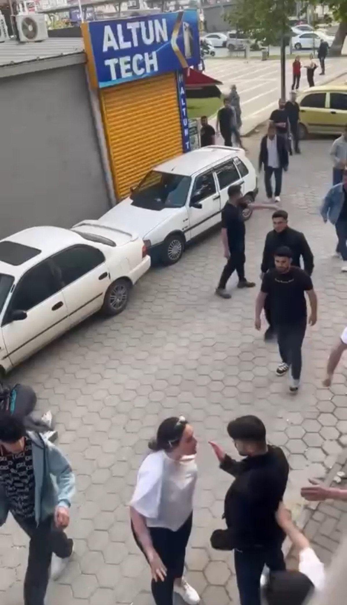 Saniyeler içinde çekilen görüntülerde kadının, kavga eden şahısları durdurmaya çalışırken güçlükle engellemeye çalıştığı görüldü.