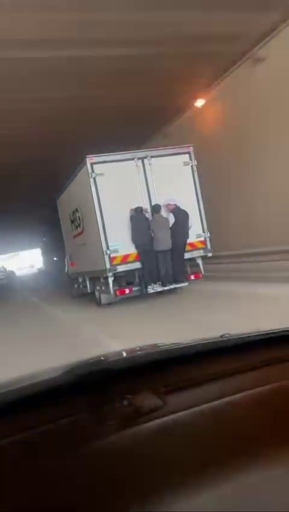 Çocukların bu tehlikeli yolculuklarını fark eden diğer sürücüler, kamyonet sürücüsüne korna ile ikaz etse de herhangi bir sonuç alınamadı.