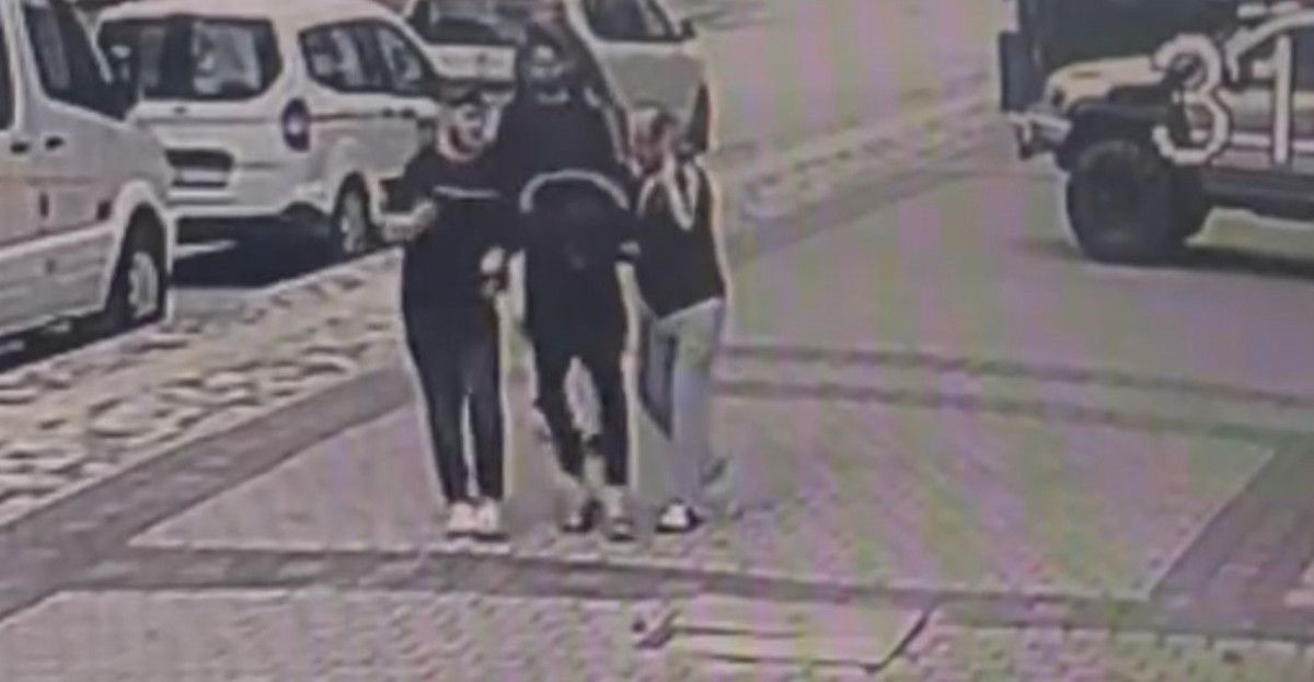 O anlar güvenlik kamerasına anbean yansırken, kuşkulu polis gruplarına teslim edildi.