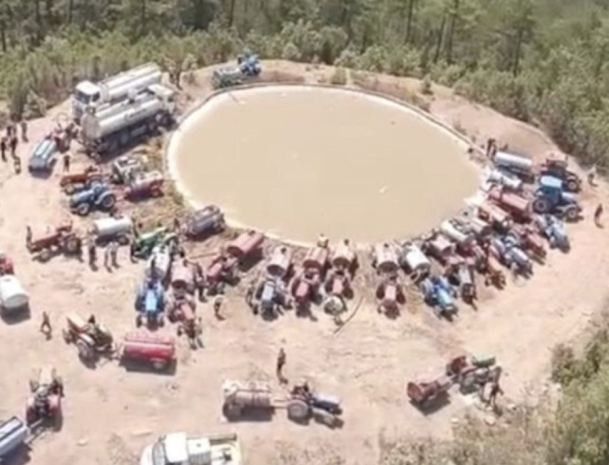 Harmancık’ta onlarca vatandaş traktörlerinin artlarına bağladıkları su dolu tankerlerle, helikopterler için yangın söndürme havuzuna su taşıdı.