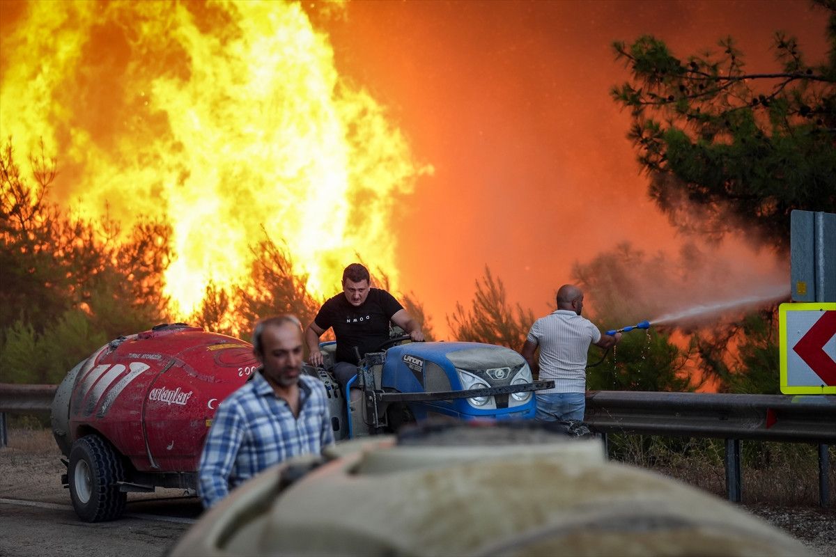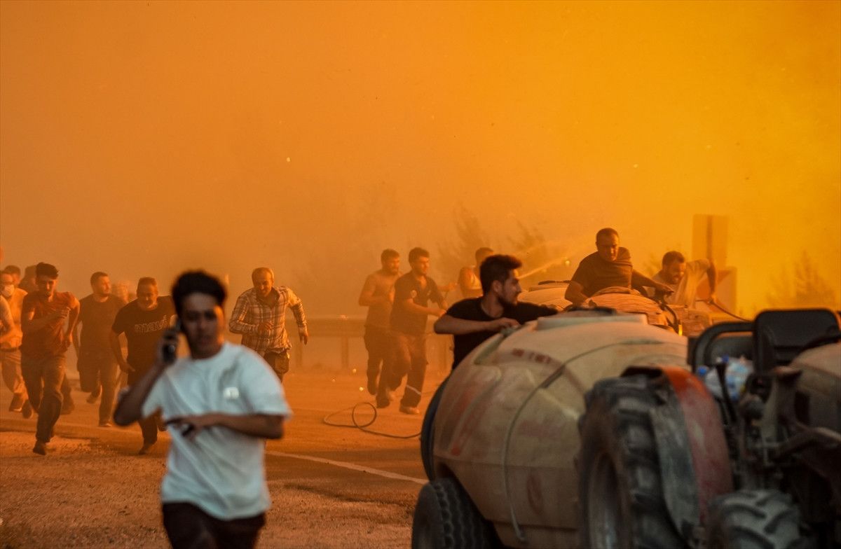 Bu sırada vatandaşlar rüzgarın tesiriyle büyüyerek üzerlerine yanlışsız yönelen alevlerden kaçtı.