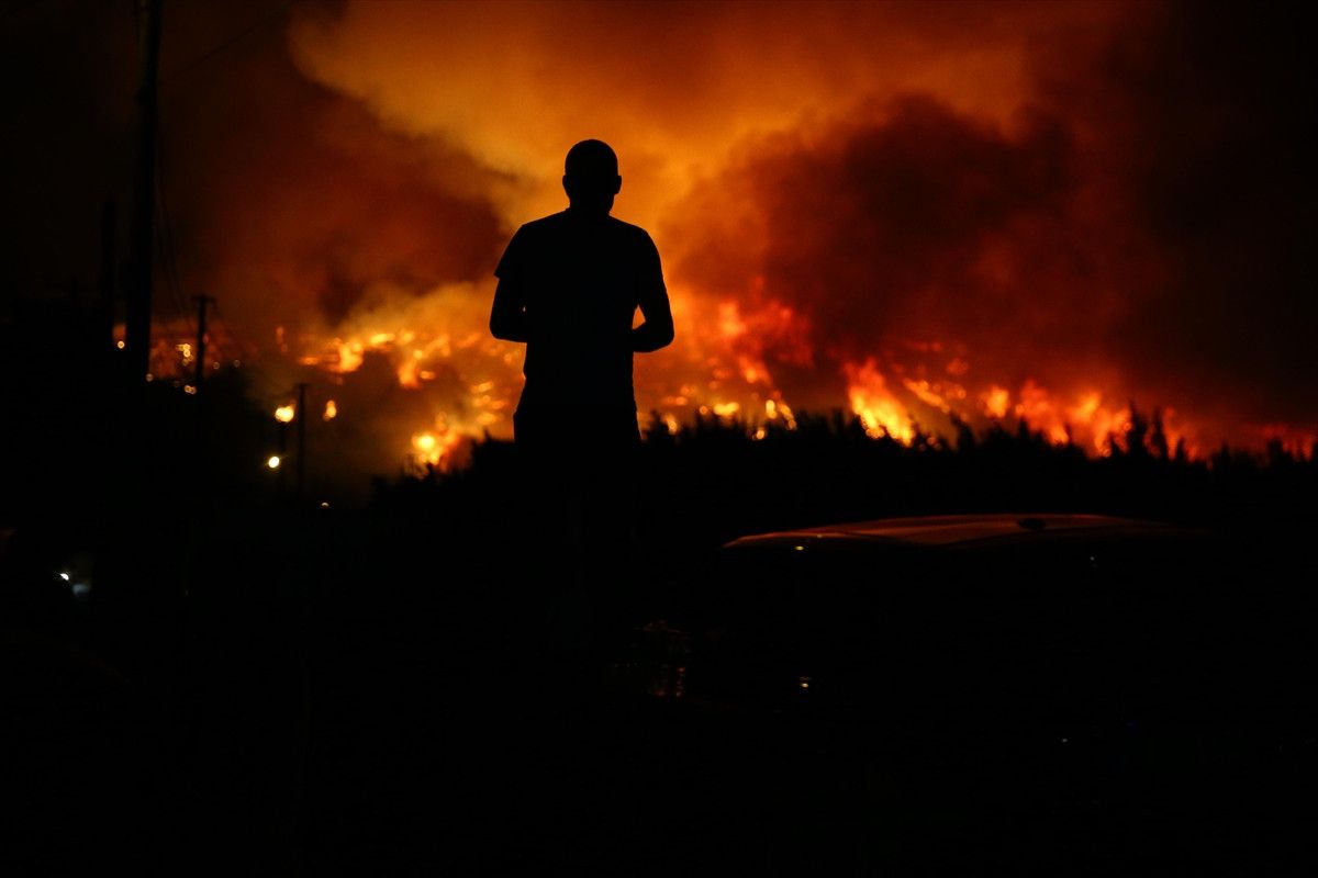 Bu sırada vatandaşlar rüzgarın tesiriyle büyüyerek üzerlerine hakikat yönelen alevlerden kaçtı.