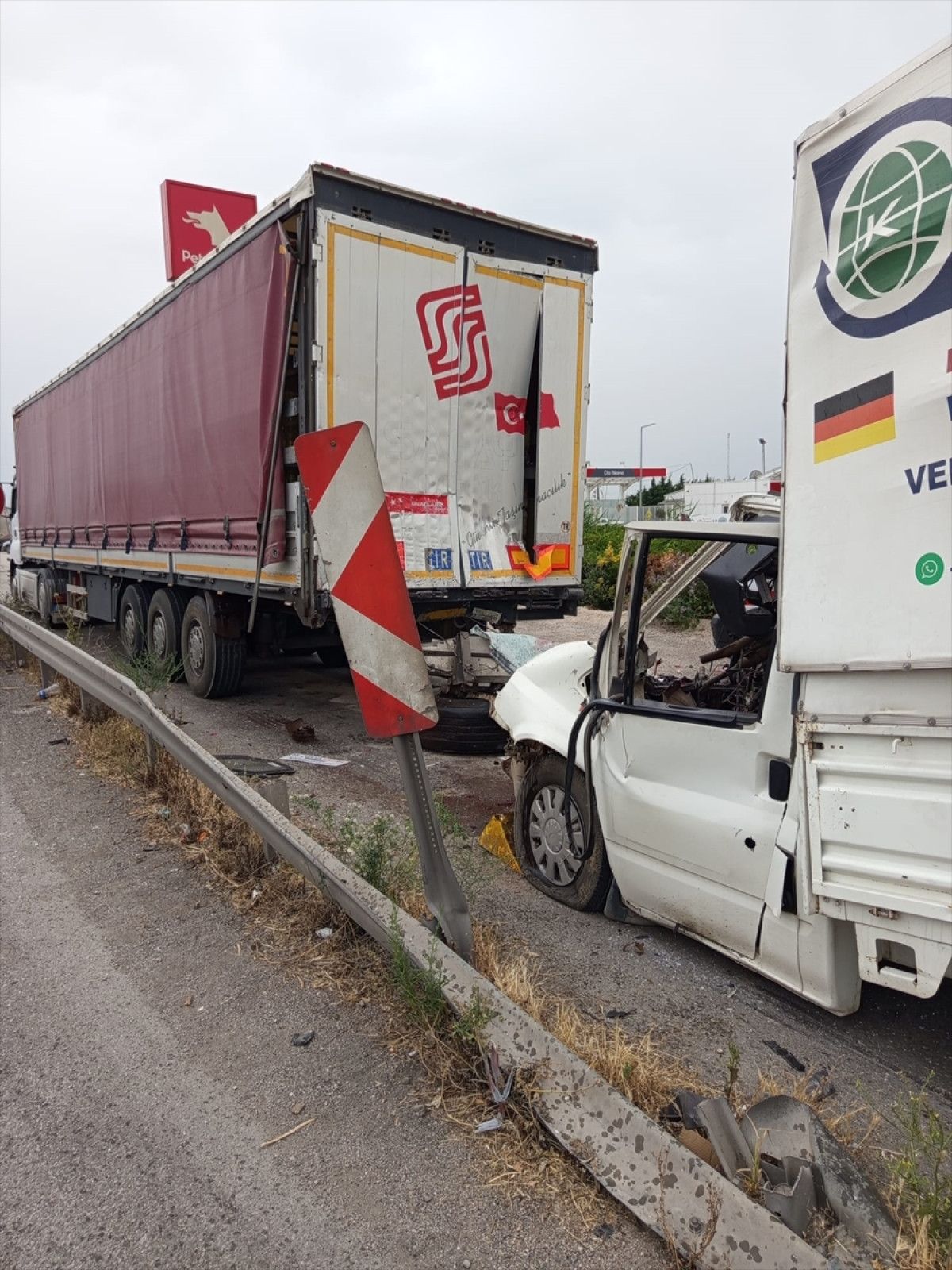 Bursa’nın Karacabey ilçesi Uluabat Mahallesi’nde Mehmet İraz (42) idaresindeki kamyonet, yol kenarında park halinde bulunan bağlı römorka geriden çarptı.