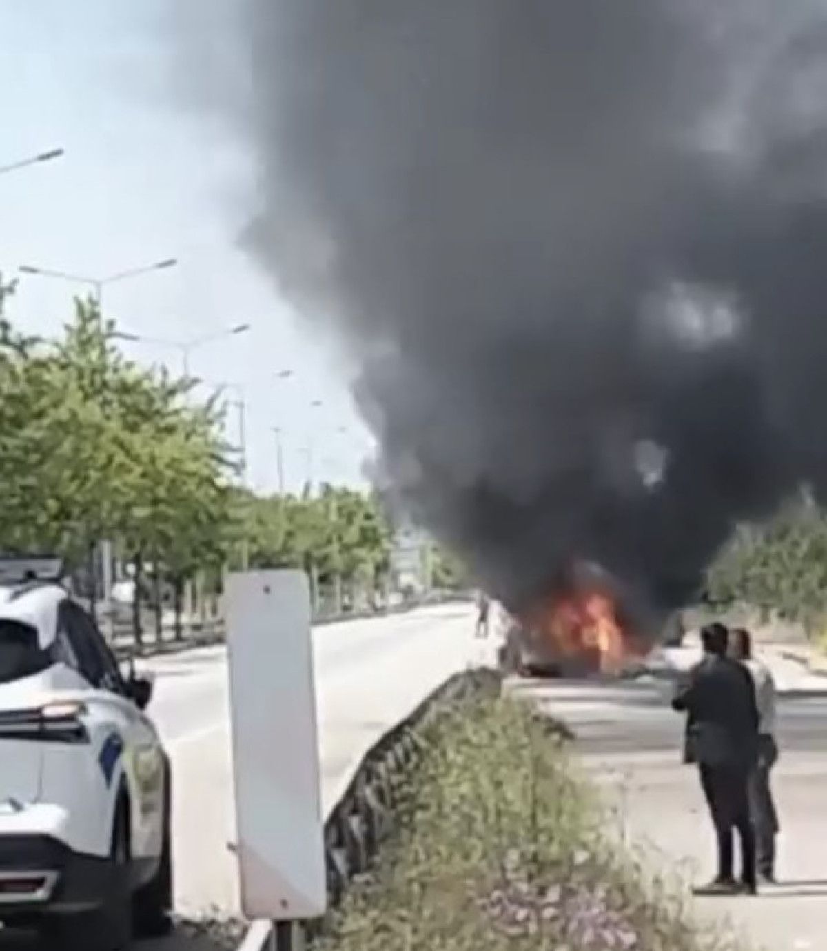 Bursa’da Ankara Bulvarı Narlıdere Mahallesi mevkiinde meydana gelen olayda, seyir halindeki bir araba şimdi bilinmeyen bir nedenle apansız alev aldı.