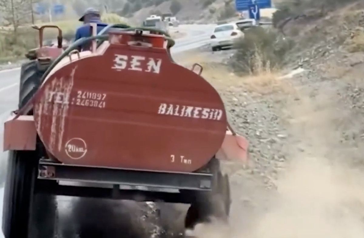Bursa’da da bir vatandaş traktörüyle yangın bölgesine su taşırken görüntülendi.