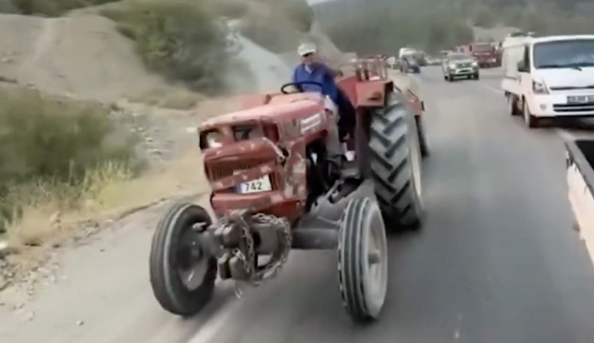 Traktörünün lastiklerinin patlamasına karşın, gayretinde vazgeçmeyen vatandaşın o imgeleri, toplumsal medyada takdir topladı.