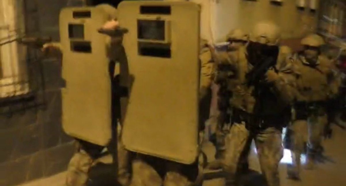 Şafak vakti yürütülen operasyonda kapılar koçbaşlarıyla kırıldı.