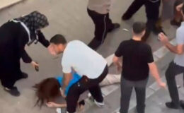 Tarafların birbirlerine yumrukla saldırdığı o anlar kameraya yansırken, vatandaşlar tarafları zahmetle ayırdı.