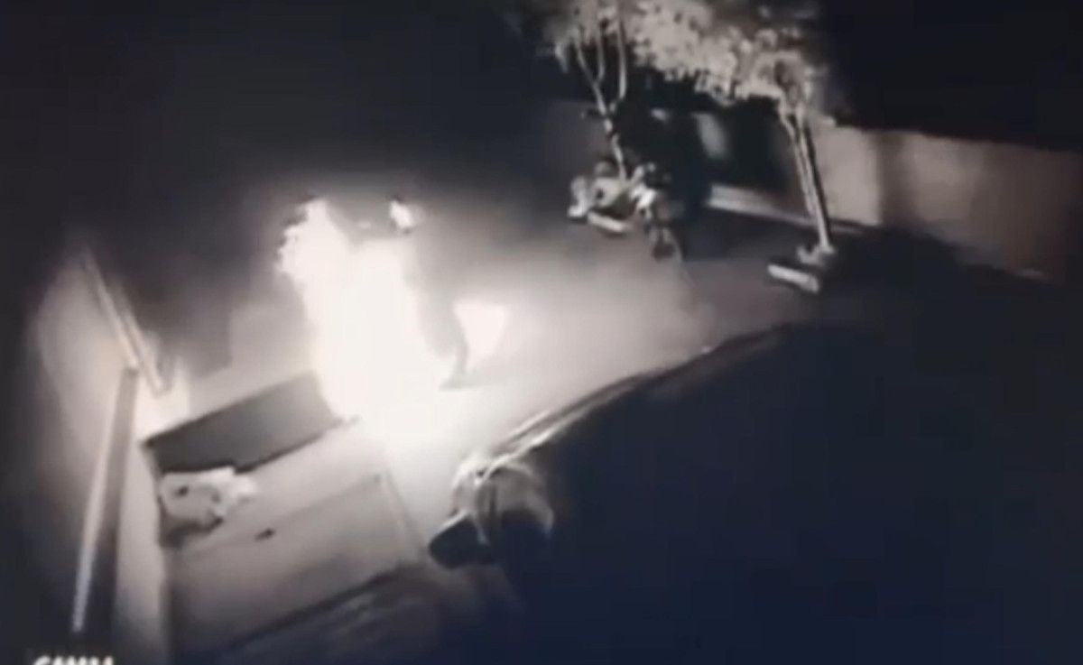 Öte yandan motosikletin kundaklanma anı, güvenlik kameralarına yansıdı.