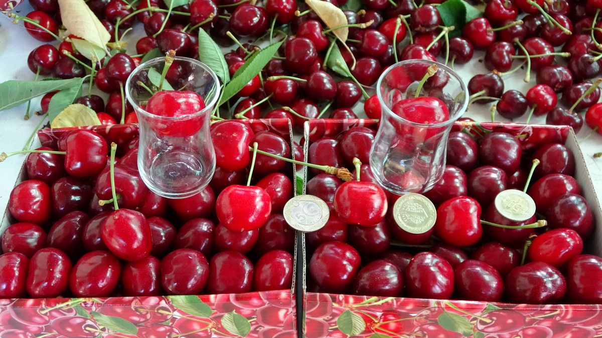 Çay bardağının boğumundan geçmeyecek kadar iri ve madeni 5 liradan büyük olan ’Ziraat 900’ cinsi kirazlarında da hasat gerçekleştirildi.