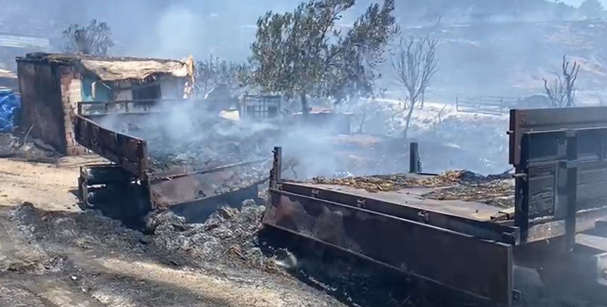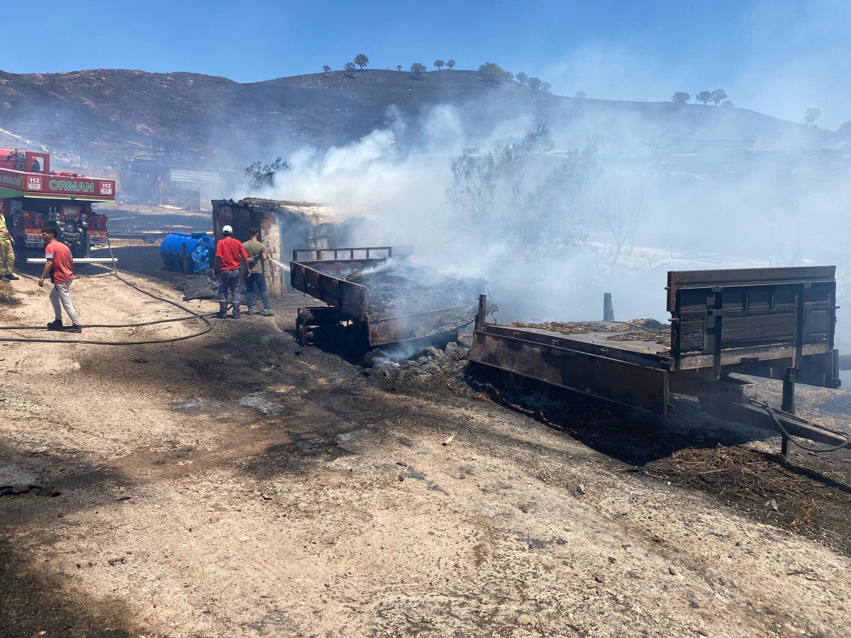 Yangında, köyde “dam” olarak bilinen 3 ahır, bir ağıl ve 2 traktör römorku yandı.