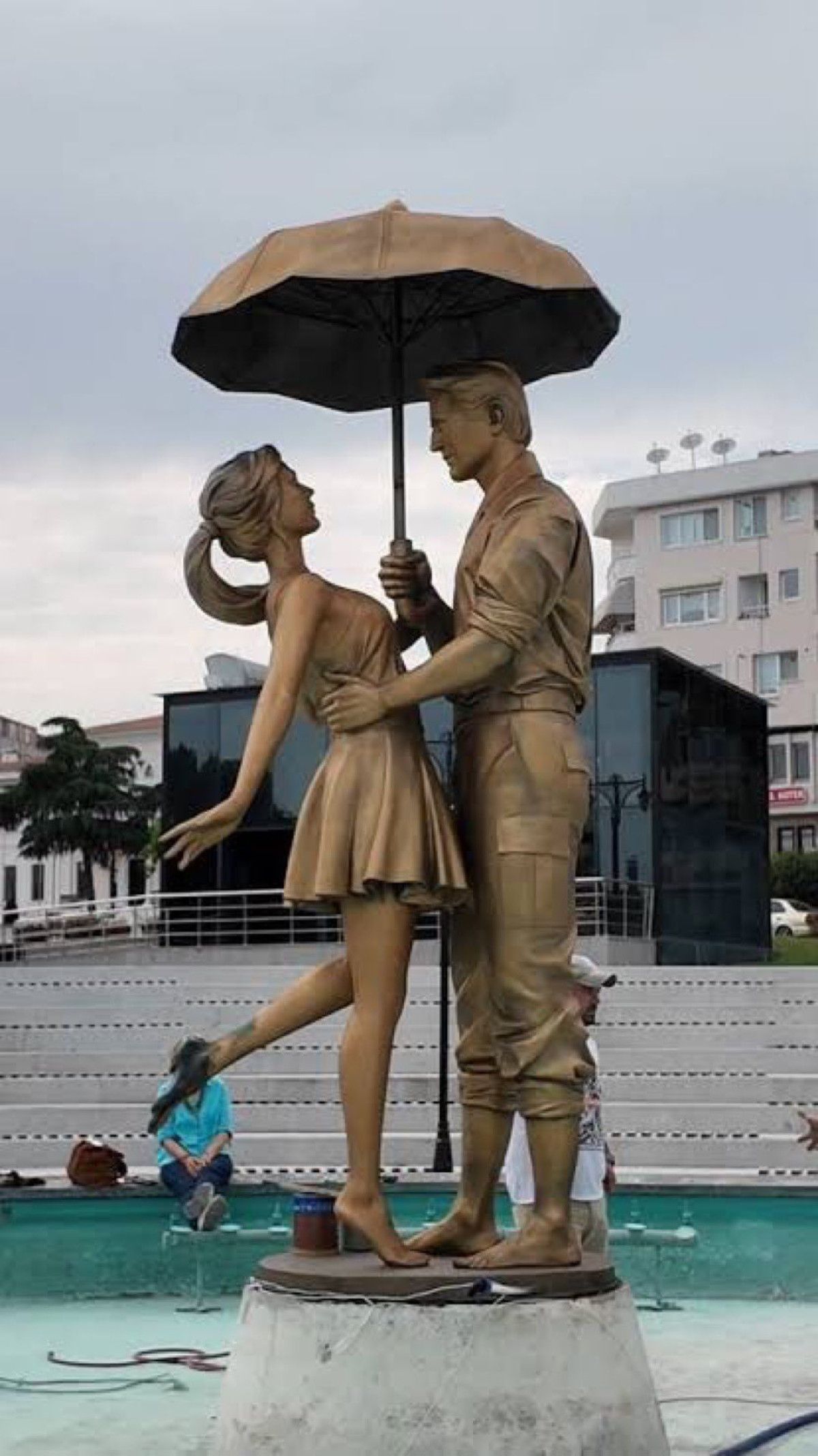Meydanı yenileyen belediye ortasına da “İki Sevgili” ismi verilen heykelini yerleştirdi.
