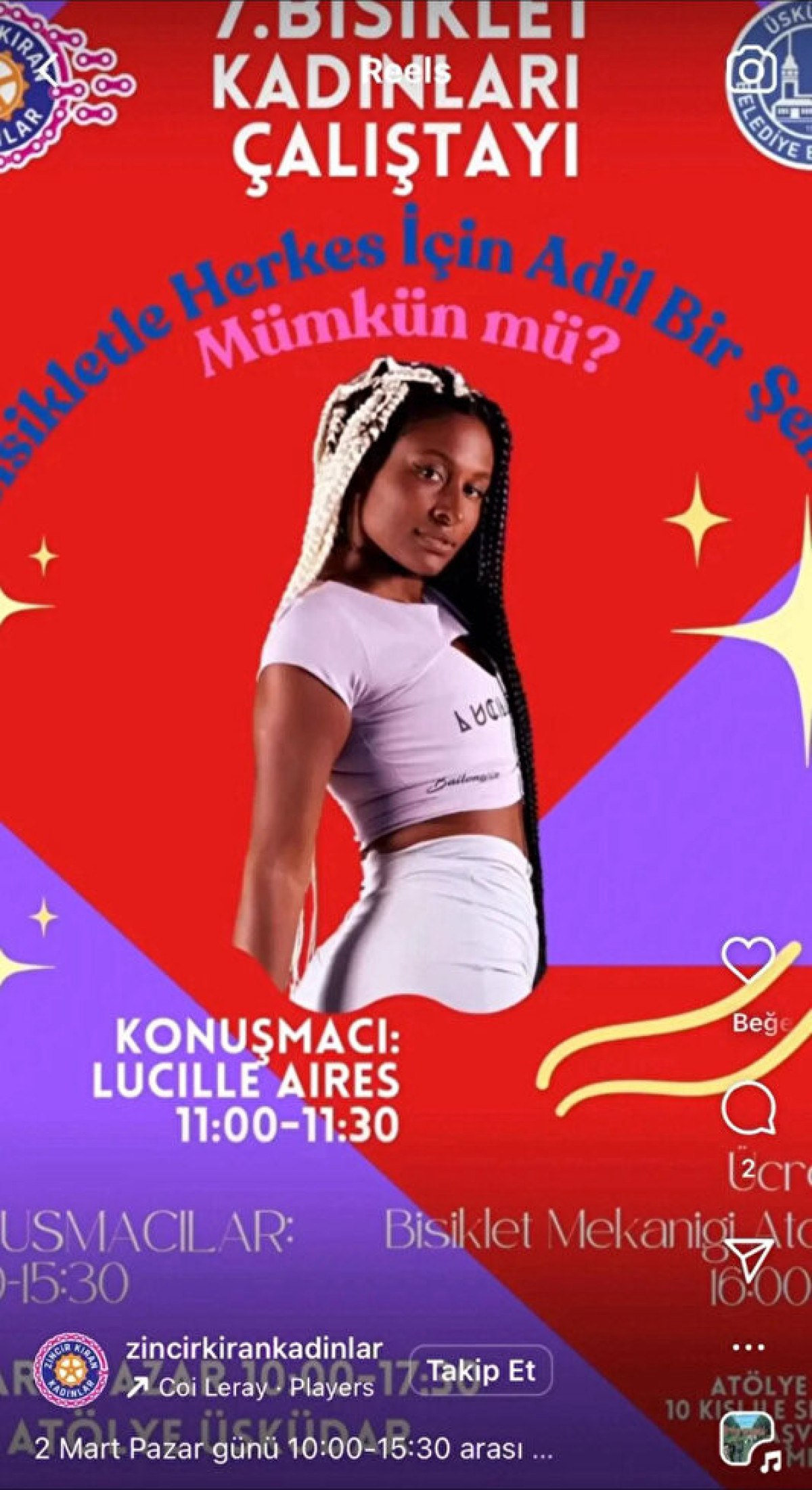 ‘Zincir kıran kadınlar çatısı’ altında çeşitli faaliyetlere imza atan Üsküdar Belediyesi’nin iş birliğiyle gerçekleştirilen eğitim belediye binasındaki atölye salonunda yapılmış, etkinliğe Afrikalı twerk eğitmeni Lucille Aires konuşmacı olarak katılmıştı..