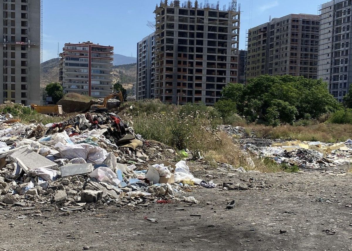 Boş bir arazi, yüzeysel bırakılan moloz ve çöplerle doldu taştı.