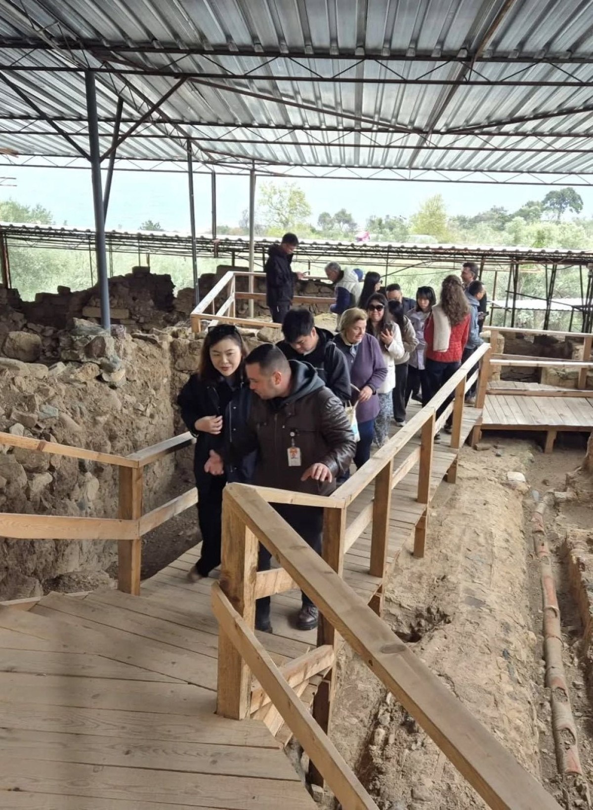 Antik kenti gezen Çinli turizmcilere, Antandros Antik Kenti Derneği Başkan Yardımcısı Leyla Tunç Yeltin rehberlik etti.