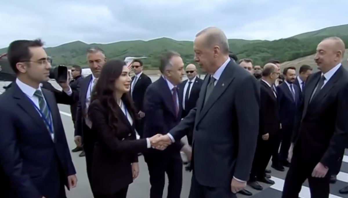 Erdoğan, Azerbaycan Cumhurbaşkanı İlham Aliyev ve Türkiye’nin Bakü Büyükelçisi Birol Akgün tarafından karşılandı.