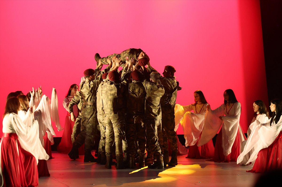 Temsilin akabinde 15 Temmuz gazisi Cumhurbaşkanı Başdanışmanı Turgut Aslan ve eşi Nadire Aslan, FETÖ’nün 15 Temmuz 2016’daki darbe teşebbüsü sırasında Ankara’da Özel Kuvvetler Komutanlığı’nda darbeci generali vurduktan sonra şehit edilen Astsubay Kıdemli Başçavuş Ömer Halisdemir’in ailesi sahneye davet edildi.