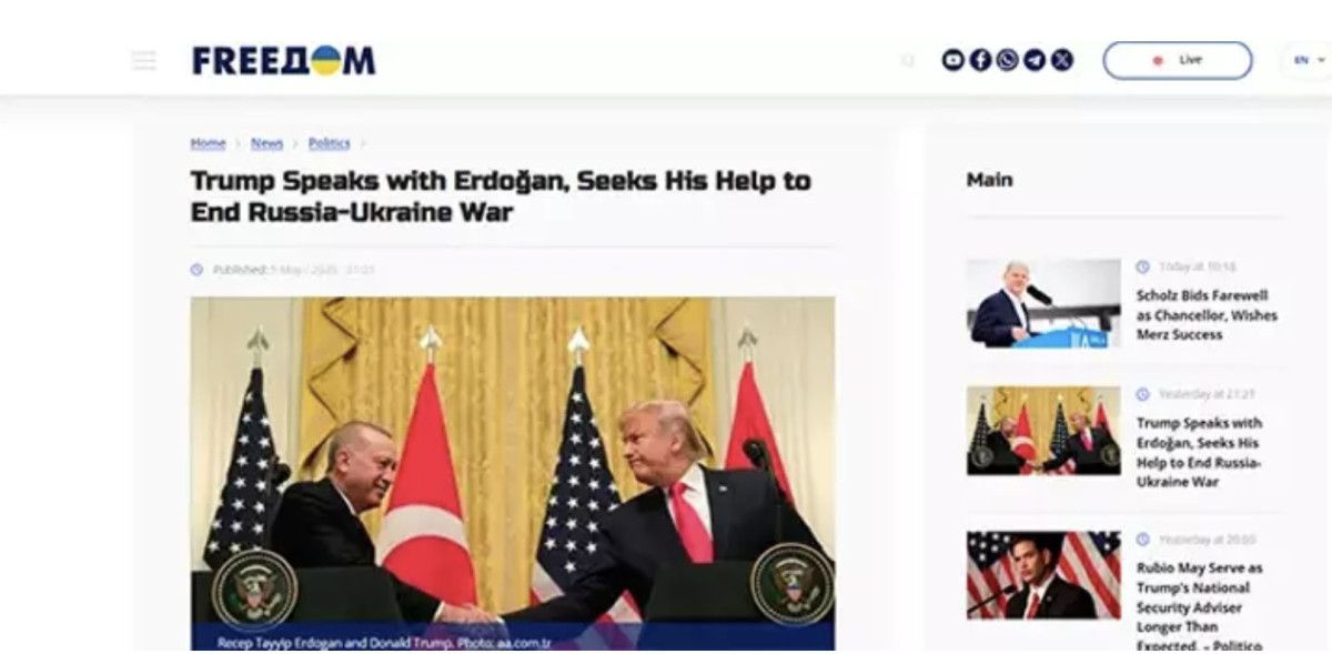 Ukrayna’nın önde gelen yayınlarından UATV kanalının sitesi “Erdoğan ile konuşan Trump Rusya-Ukrayna savaşını bitirmek onun yardımını istedi” başlığı attı.
