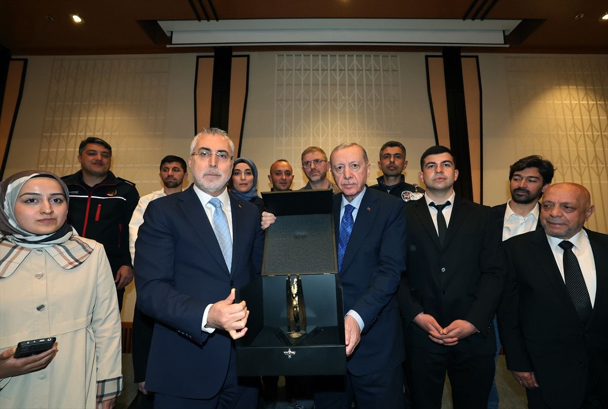 Cumhurbaşkanı Recep Tayyip Erdoğan, 1 Mayıs Emek ve Dayanışma Günü kapsamında, Cumhurbaşkanlığı Külliyesi’nde personel, memur ve emekçi temsilcileriyle bir ortaya geldi.