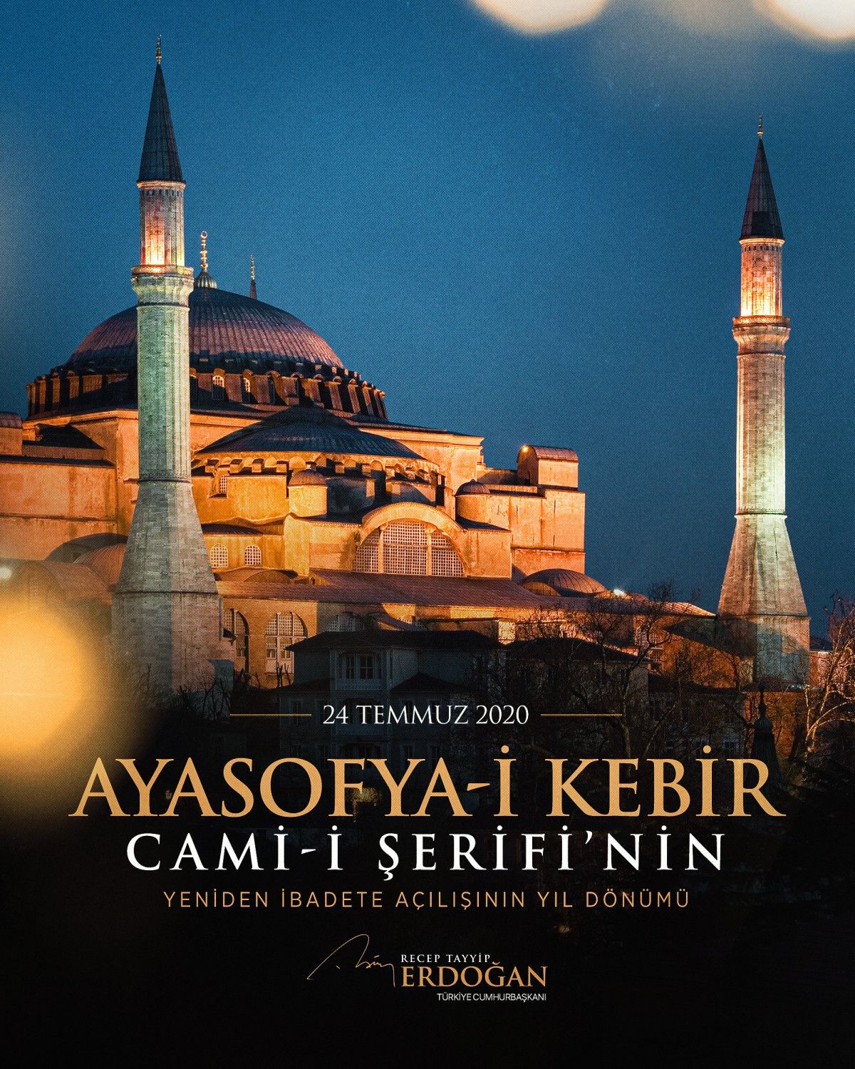 Ayasofya’nın ibadete açılışının yıl dönümünü kutlayan Erdoğan, paylaşımında şu kelamlara yer verdi: