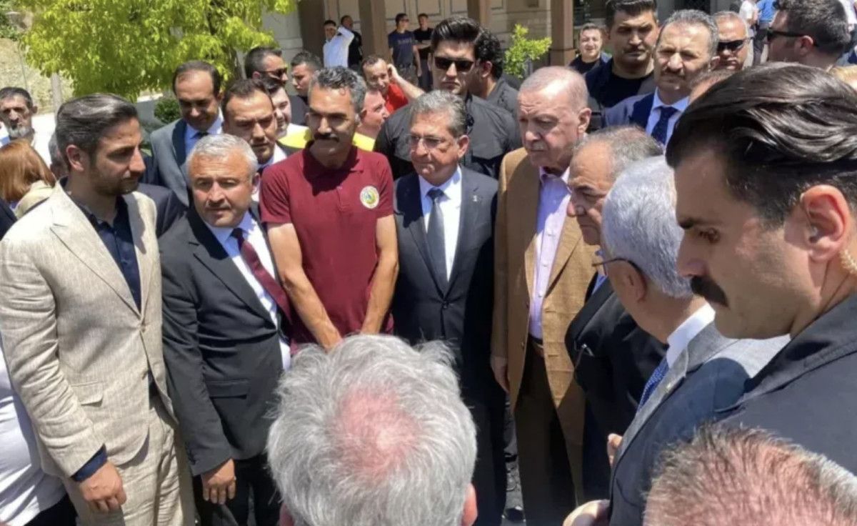 Namaz sonrası vatandaşlarla sohbet eden Cumhurbaşkanı Erdoğan’ın alışılmışın dışında giydiği yazlık kahverengi kadro elbisesi dikkat çekti.
