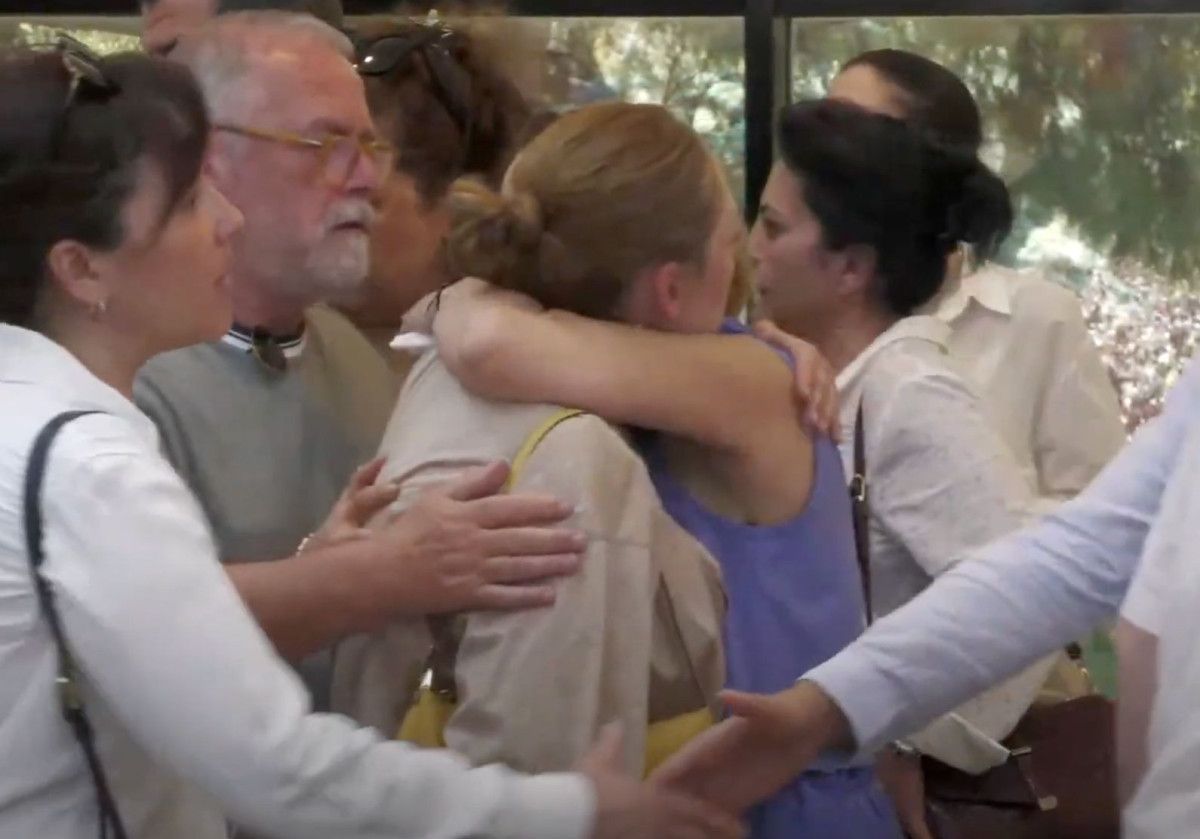 Gözü yaşlı Evgar, sıkıntı anlar yaşayan Nurcan Zeyrek’e sarılarak acılı bayanı teselli etti.