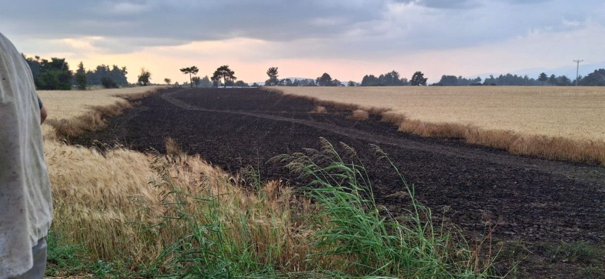 Anızda başlayan yangın, fırtınanın tesiriyle büyüyerek, yan tarlada bulunan ekili buğday tarlasına sıçradı.