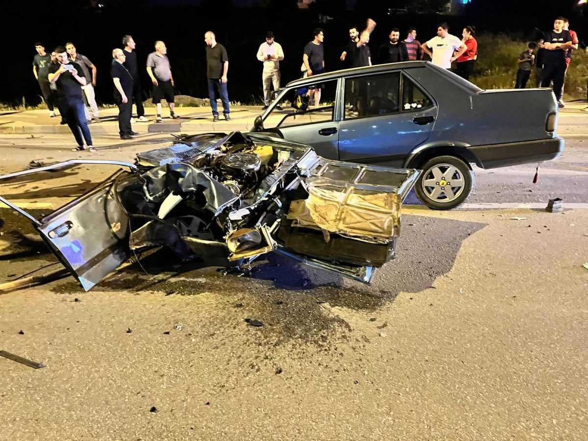Çarpışmanın tesiriyle Tofaş marka araç ikiye bölünerek, motor kesimleri etrafa saçıldı.
