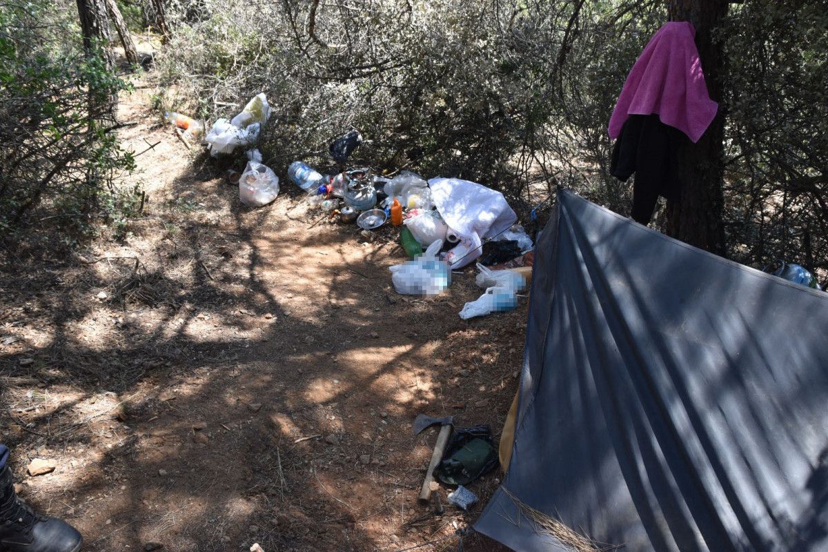 Kaçmasına fırsat verilmeden yakalanan Faruk D.’nin saklanmış olduğu alanın geniş ormanlık arazi olması nedeniyle bölgede asayiş komandolarca yapılan aramalarda ormanlık alan içerisinde 1 adet kamp çadırı, çadır içerisinde 105 gram esrar, hayat gereçleri, 1 adet ruhsatsız av tüfeği ve ormanlık alana özel olarak sulama sistemiyle hazırlanmış ekili halde kenevir bitkileri ele geçirildi.