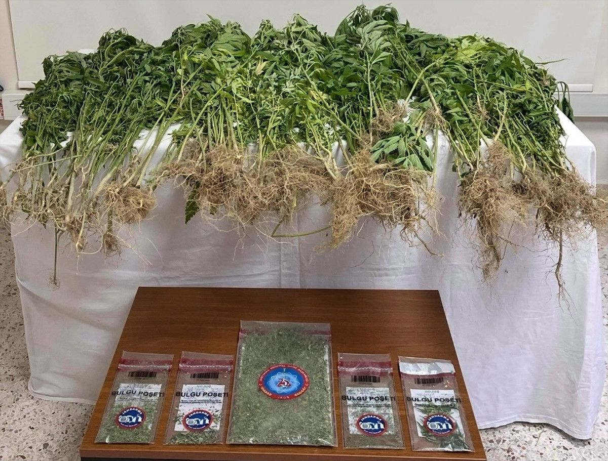 Adreste 343 kök kenevir bitkisi ve 102 gram esrar ele geçirildi.