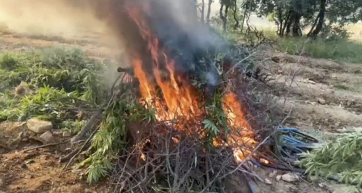 Jandarmamız Diyarbakır’da 100 tondan fazla toz esrar elde edilebilecek 12 milyon 389 bin adet kök kenevir ve skunk ele geçirdi.