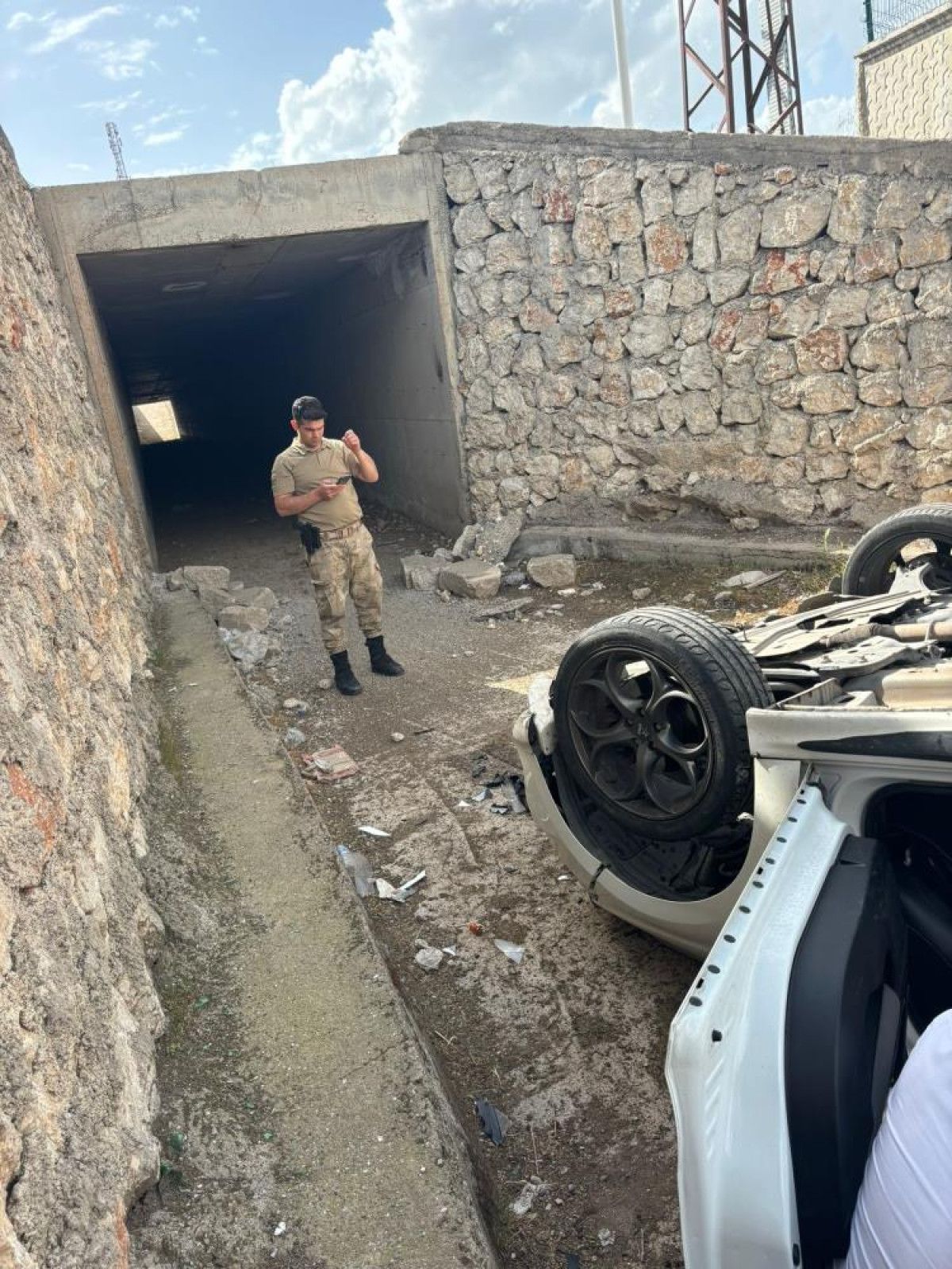 Diyarbakır’ın Sur ilçesi Mermer Mahallesi’nde şoförünün denetiminden çıkan araba, yaklaşık 3 yükseklikteki köprüden düşerek takla attı.
