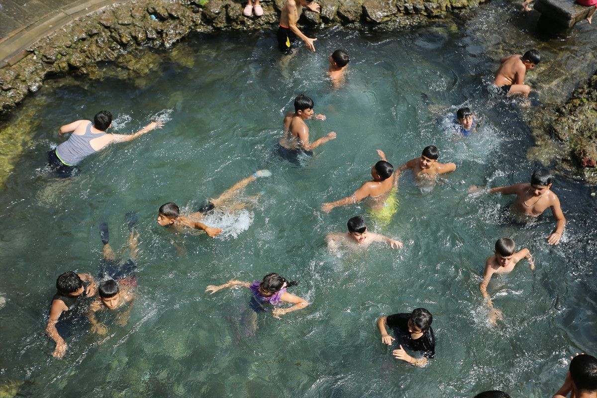 Kentte tesirli olan sıcak hava nedeniyle çocuklar, merkez Sur ilçesindeki Anzele Parkı’nda bulunan süs havuzuna girerek serinlemeye çalıştı.