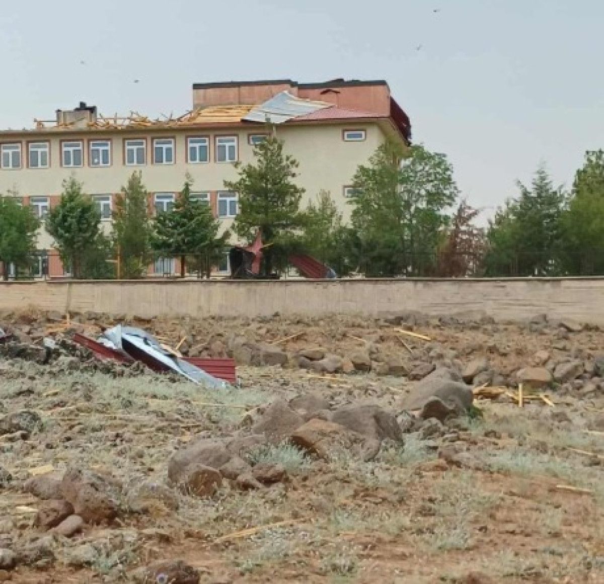 Parçalar okulun bahçesine ve dışına düştü.