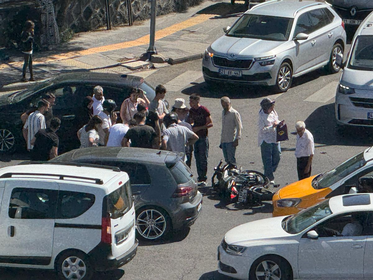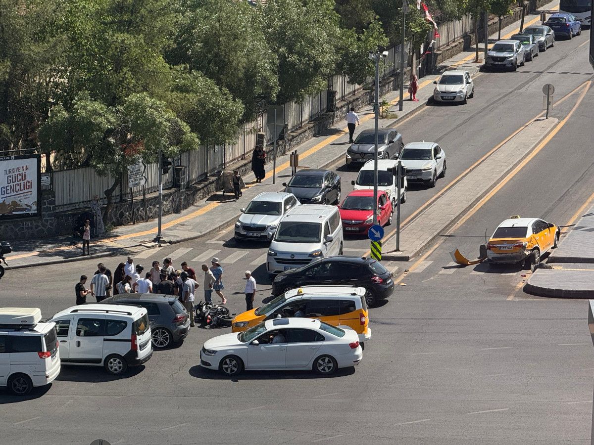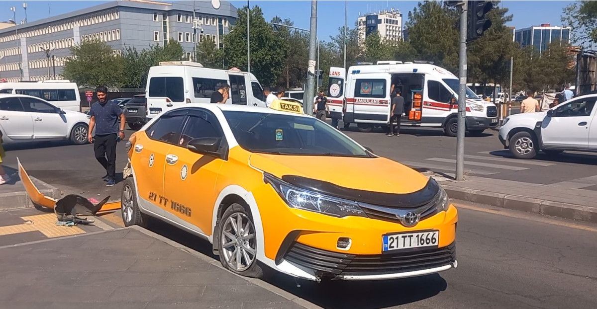 Sola dönüşün yasak olduğu kavşakta ikaz tabelalarına aldırmadan hareket yapan sürücünün kullandığı 21 TT 1666 plakalı taksi, 21 AFM 804 plakalı motosiklet çarptı.