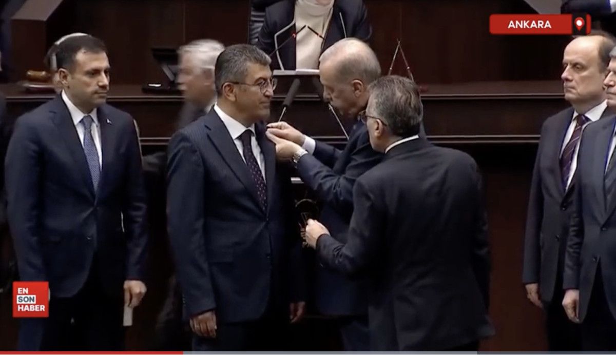 Ekici’ye AK Parti rozetini, Cumhurbaşkanı Recep Tayyip Erdoğan taktı.